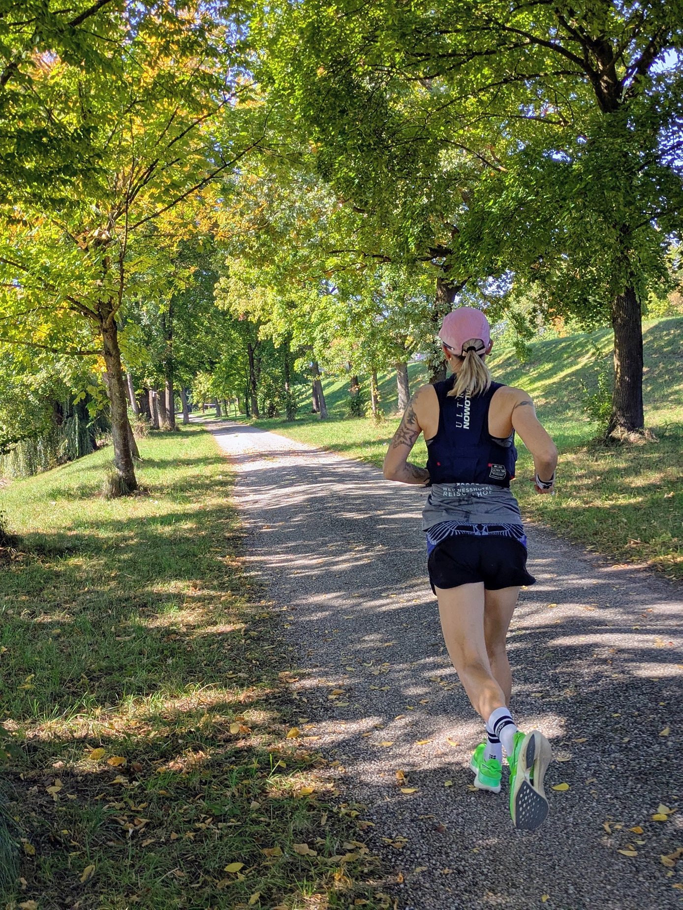 Von hier an war ich wieder einmal auf mich alleine gestellt. Ich versuchte die Geschwindigkeit hoch zu halten. Erst beim Kilometer 11 erfuhr Ich dann von meinem Ehemann Alex, dass ich einen ca. 300 m großen Vorsprung auf die 2. Platzierte hatte.