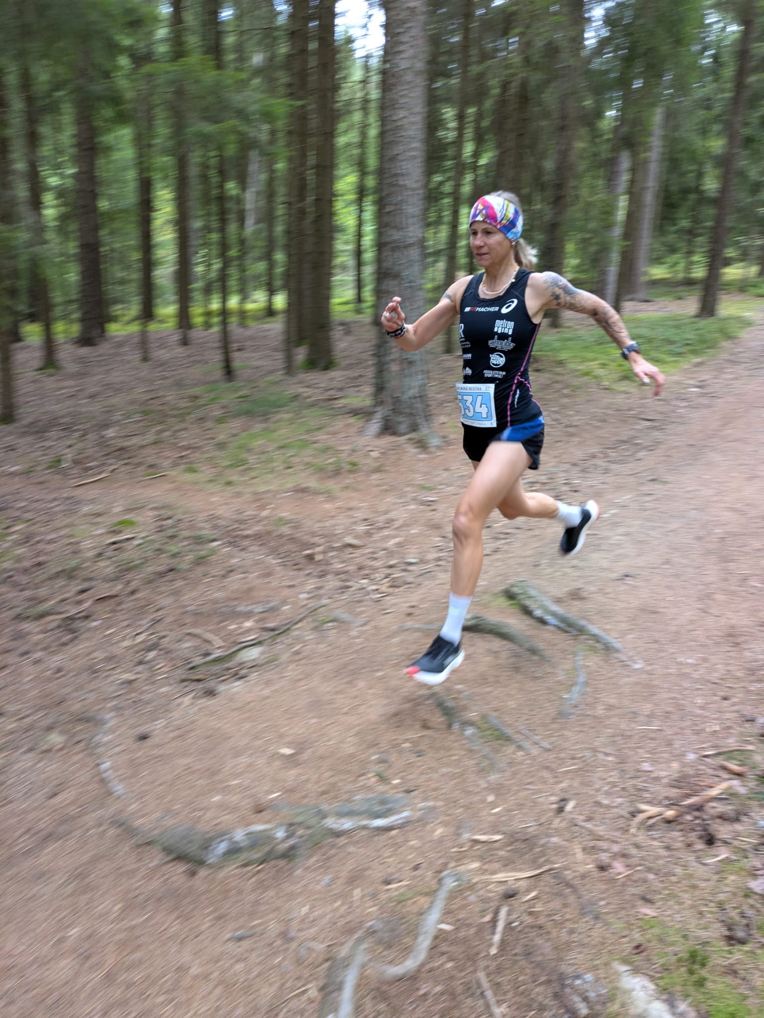 Auf der Königsdisziplin, dem „Bayerwaldkönig“, über 54 Kilometer mit 2.500 Höhenmeter, stellte sie ihre beeindruckende Ausdauer und mentale Stärke eindrucksvoll ein weiteres Mal unter Beweis. Die technisch anspruchsvolle Strecke führte über die Höhenzüge rund um den Großen Arber sowie entlang der Achttausender-Route des Goldsteigs, bevor sie nach dem fordernden