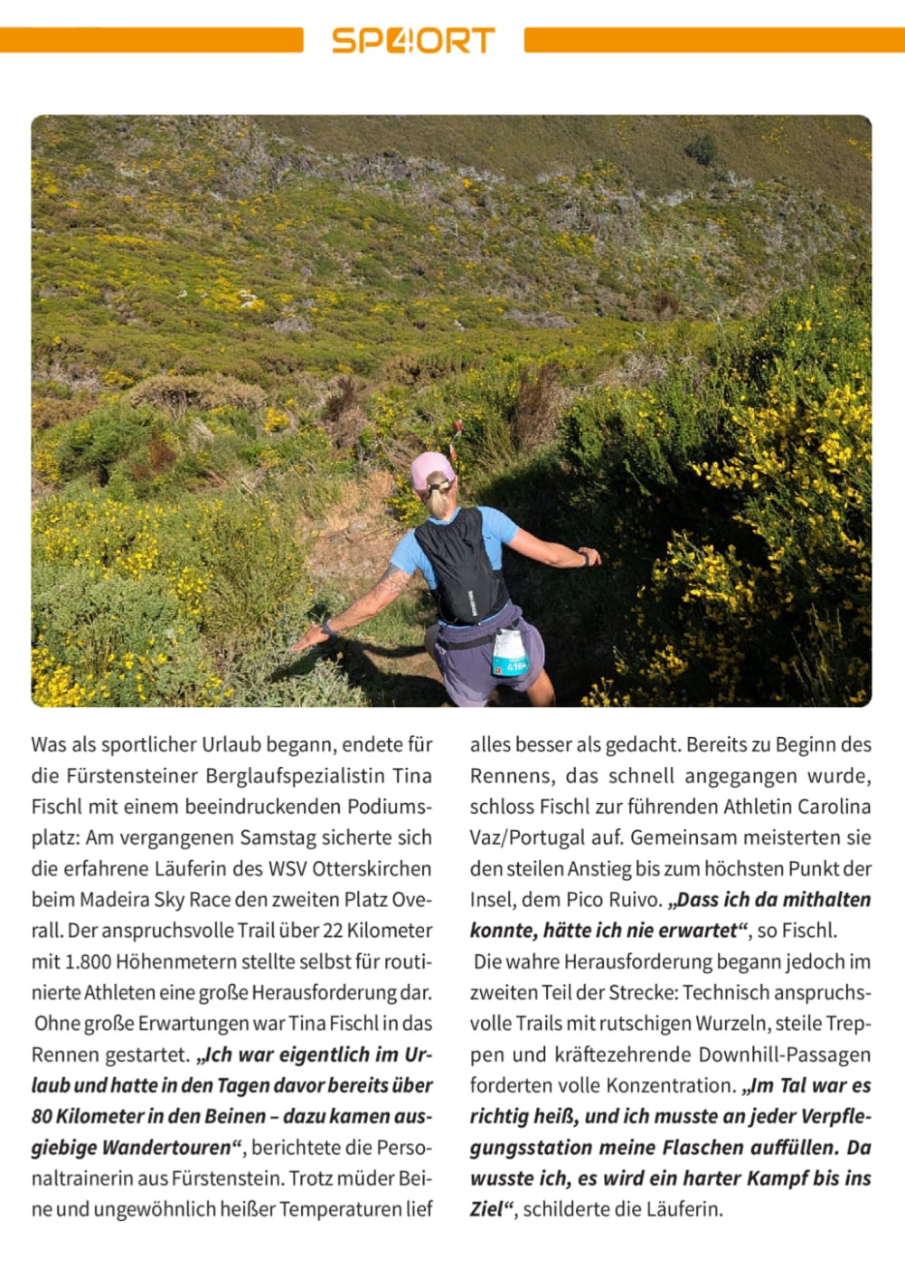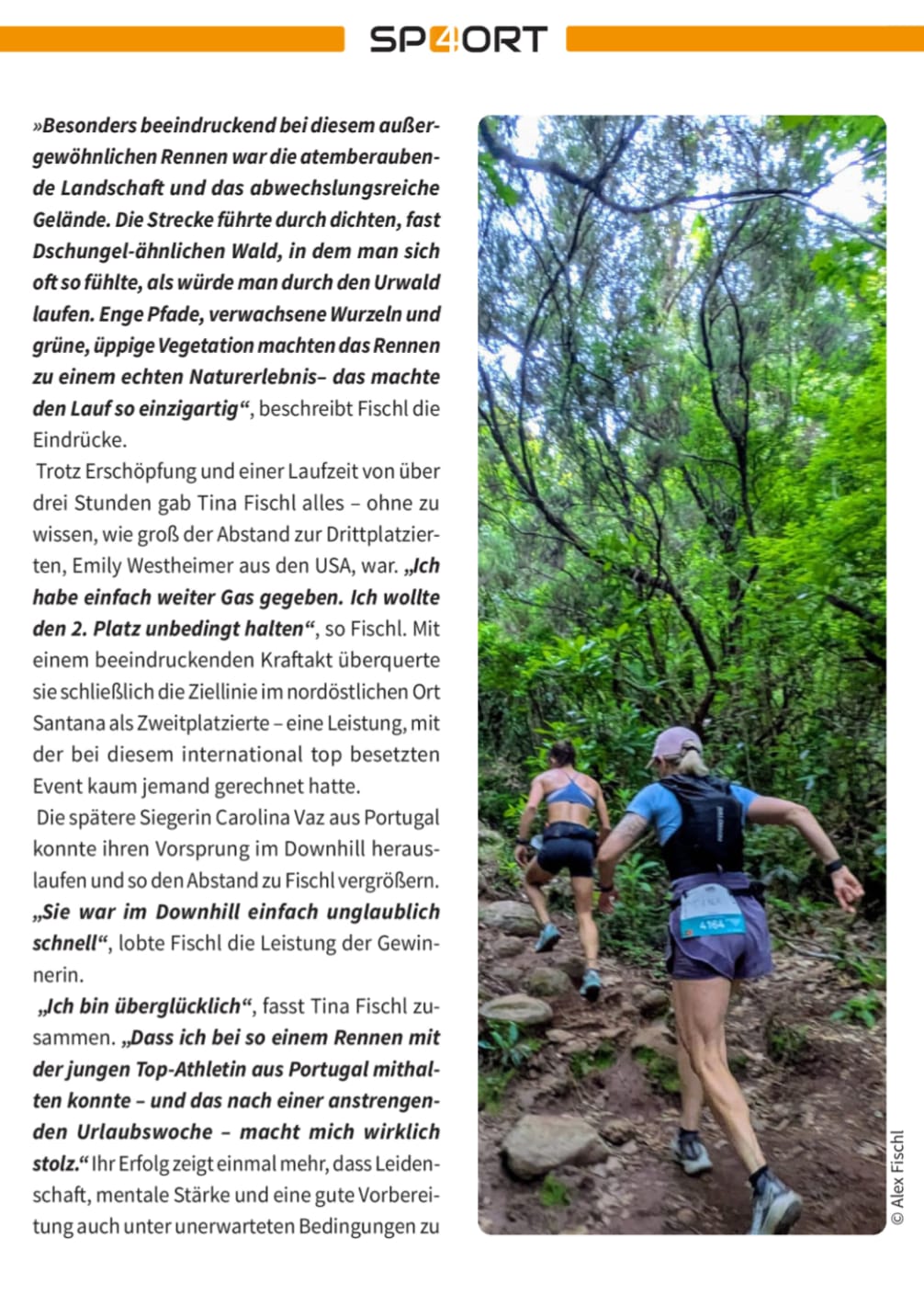 Auch Tina Fischl/WSV Otterskirchen, ist keine unbekannte in der Trail-Szene, Sie bewies ebenfalls bereits mehrmals Ihr Durchhaltevermögen bei Etappenrennen. In den Jahren 2014/2015 gewann Sie bei den Salomon4Trails (4 Tagesrennen über die Alpen) mehrere Etappen und konnte jeweils als 2. Platzierte in der Gesamtwertung finishen. Zudem gewann Sie erst vor kurzem bei den SCOTT ROCK THE TOP sowohl den Halbmarathon als auch den Berglauf am höchsten Berg Deutschlands, der Zugspitze.